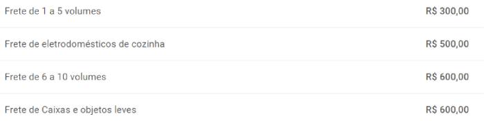 A tabela de preços completa para pequenos fretes você pode conferir aqui.